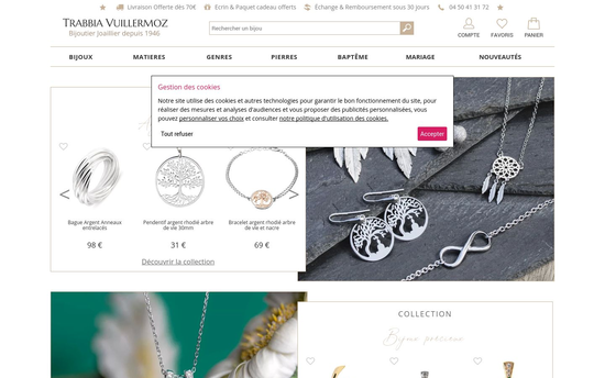 La Bijouterie en ligne Trabbia Vuillermoz vous présente sa collection de plus de 4500 Bijoux dans différentes gammes de bagues, bracelets, colliers ou pendentifs